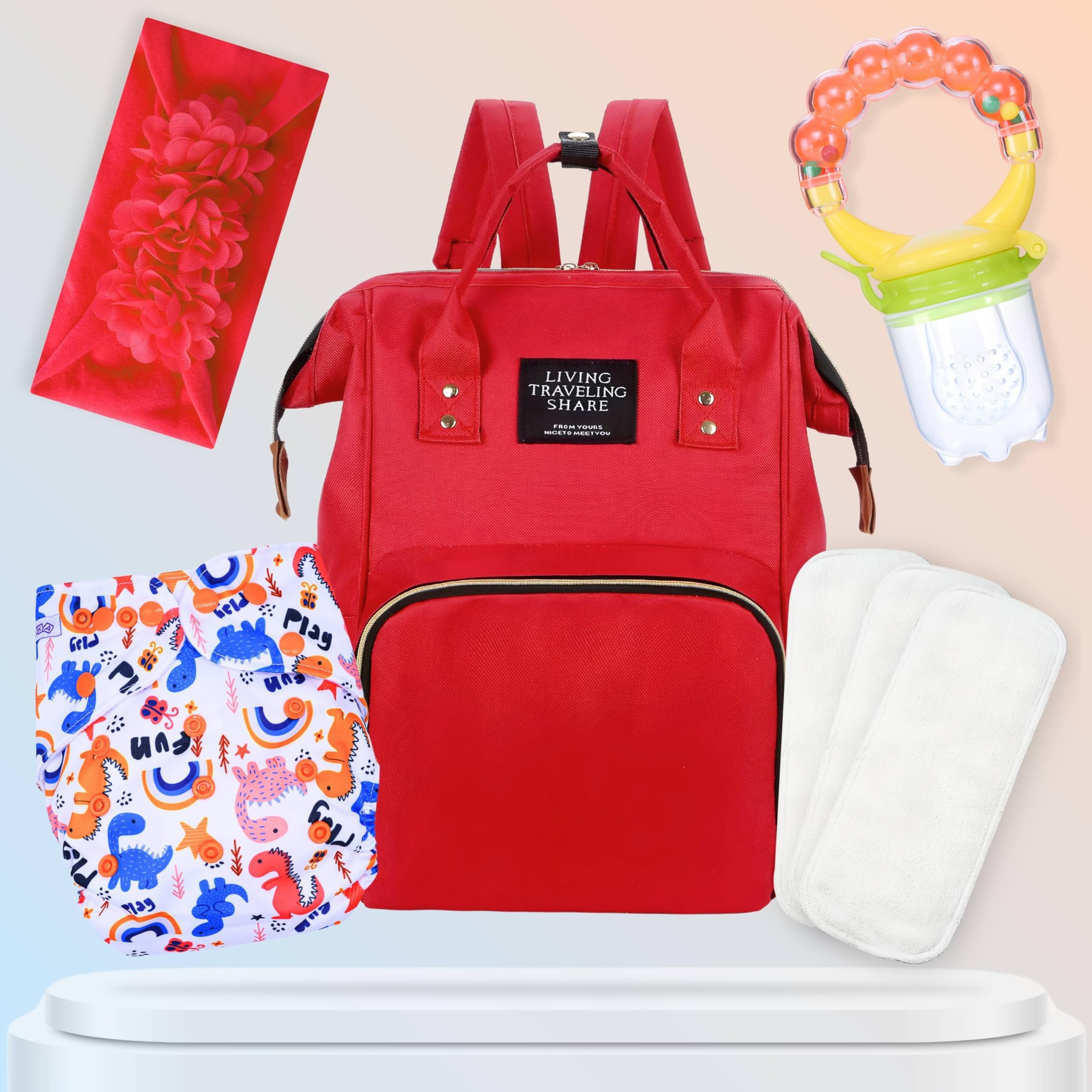 Baby Care Accessories Cloth Diaper, Inserts, Diaper Bag, Headbands, Nibbler (Set of 5)