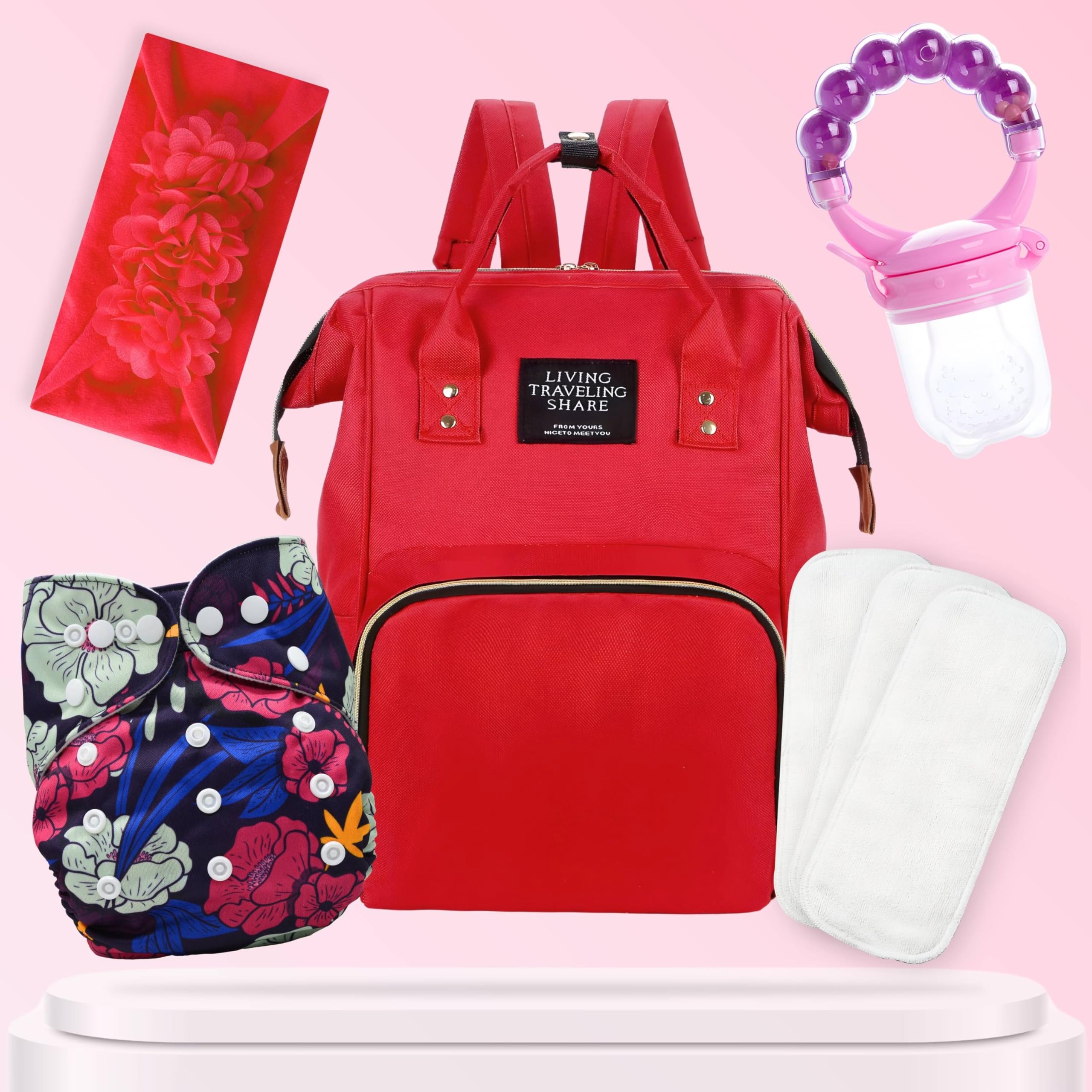 Baby Care Accessories Cloth Diaper, Inserts, Diaper Bag, Headbands, Nibbler (Set of 5)