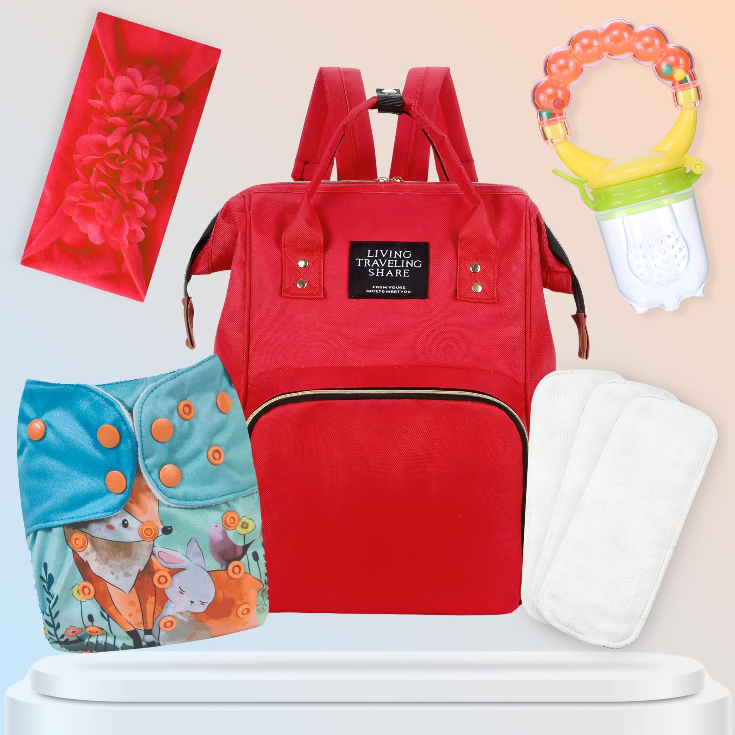 The Bembika Baby Product Combination is a comprehensive set of baby products designed with utmost care and precision. Made from high-quality material, the product combination ensures durability and longevity. The combination includes hair accessories for baby and a stylish headband for girls, adding a touch of style to your baby?s attire. The silicone food nibbler for baby and fruit nibbler for babies are compact and stylish in nature, making feeding time fun and enjoyable. The cloth diaper for babies, reusable diapers, and adjustable cloth diapers are easy to clean and can be adjusted as per your baby?s comfort. The combination also includes cloth diaper inserts, diaper inserts reusable, and nappy inserts that help in maintaining hygiene and cleanliness. For mothers, the combination includes a diaper bag, a nursing bag, and a diaper changing bag. These bags are designed keeping in mind the needs of a mother, with ample space and compartments for all the baby essentials. The Bembika Baby Product Combination is a one-stop solution for all your baby needs.