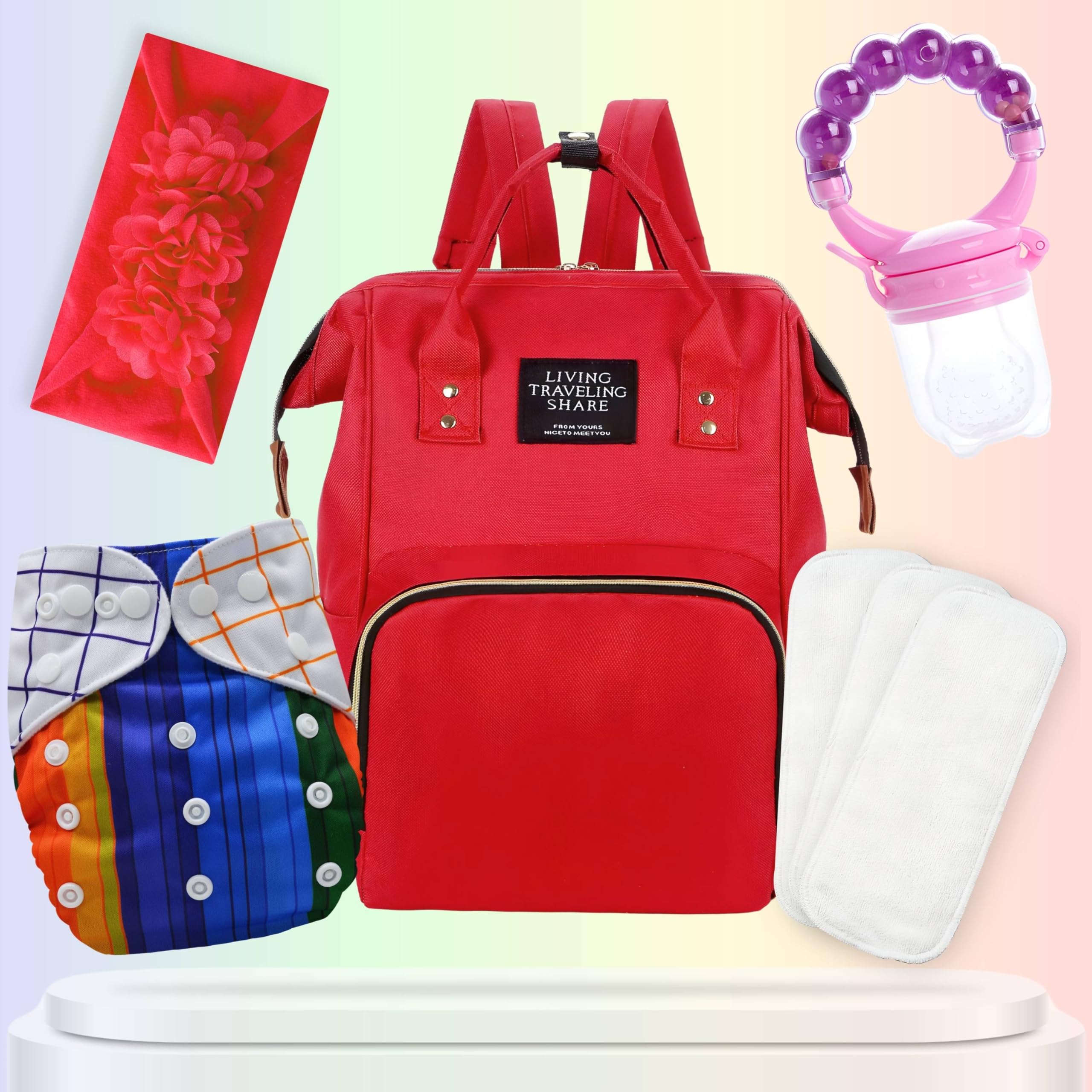 The Bembika Baby Product Combination is a comprehensive set of baby products designed with utmost care and precision. Made from high-quality material, the product combination ensures durability and longevity. The combination includes hair accessories for baby and a stylish headband for girls, adding a touch of style to your baby?s attire. The silicone food nibbler for baby and fruit nibbler for babies are compact and stylish in nature, making feeding time fun and enjoyable. The cloth diaper for babies, reusable diapers, and adjustable cloth diapers are easy to clean and can be adjusted as per your baby?s comfort. The combination also includes cloth diaper inserts, diaper inserts reusable, and nappy inserts that help in maintaining hygiene and cleanliness. For mothers, the combination includes a diaper bag, a nursing bag, and a diaper changing bag. These bags are designed keeping in mind the needs of a mother, with ample space and compartments for all the baby essentials. The Bembika Baby Product Combination is a one-stop solution for all your baby needs.