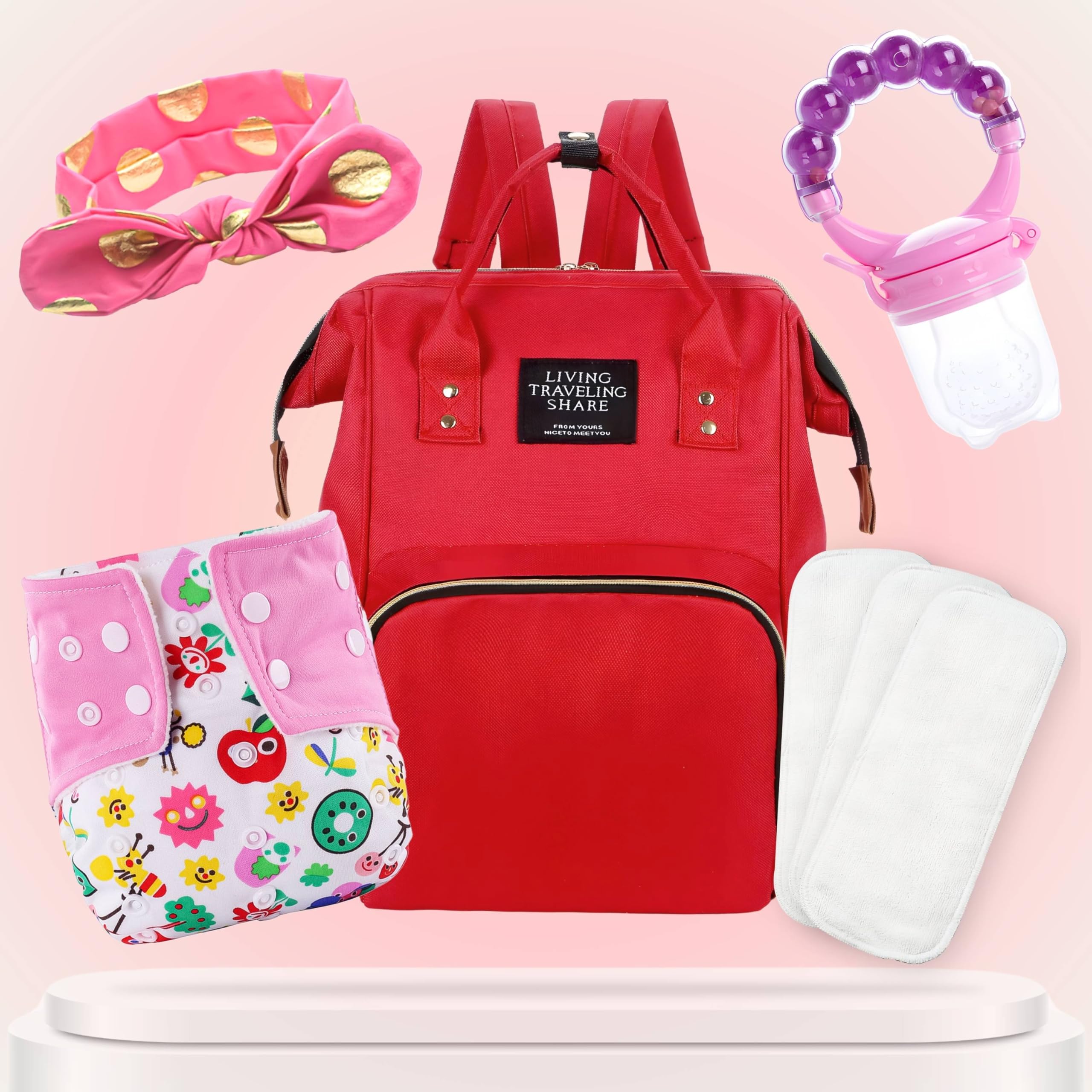 Baby Care Accessories Cloth Diaper, Inserts, Diaper Bag, Headbands, Nibbler (Set of 5)