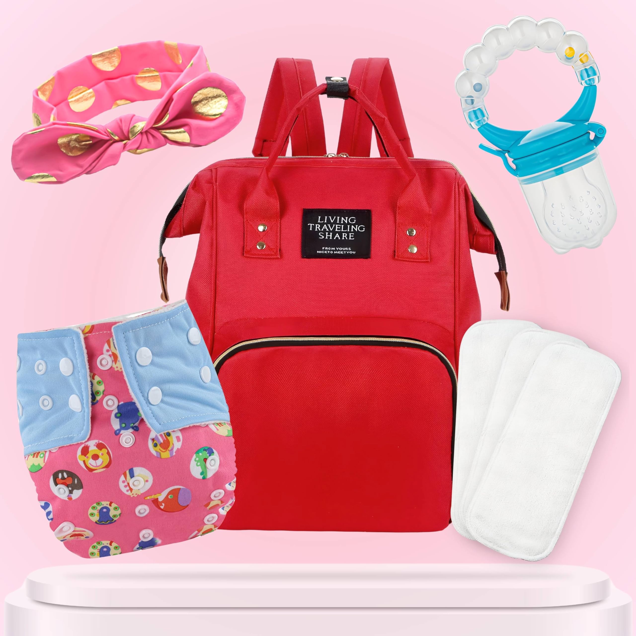 Baby Care Accessories Cloth Diaper, Inserts, Diaper Bag, Headbands, Nibbler (Set of 5)