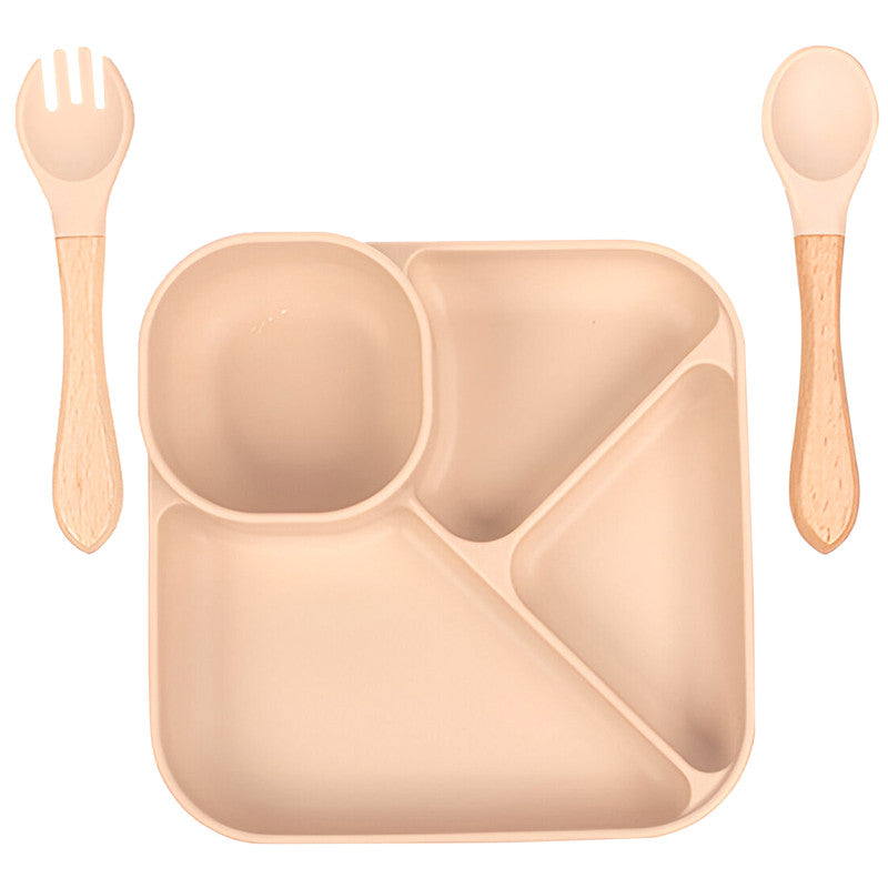 Baby Feeding Essential Baby Dinner Set Infant Training Eating Utensils (Beige)