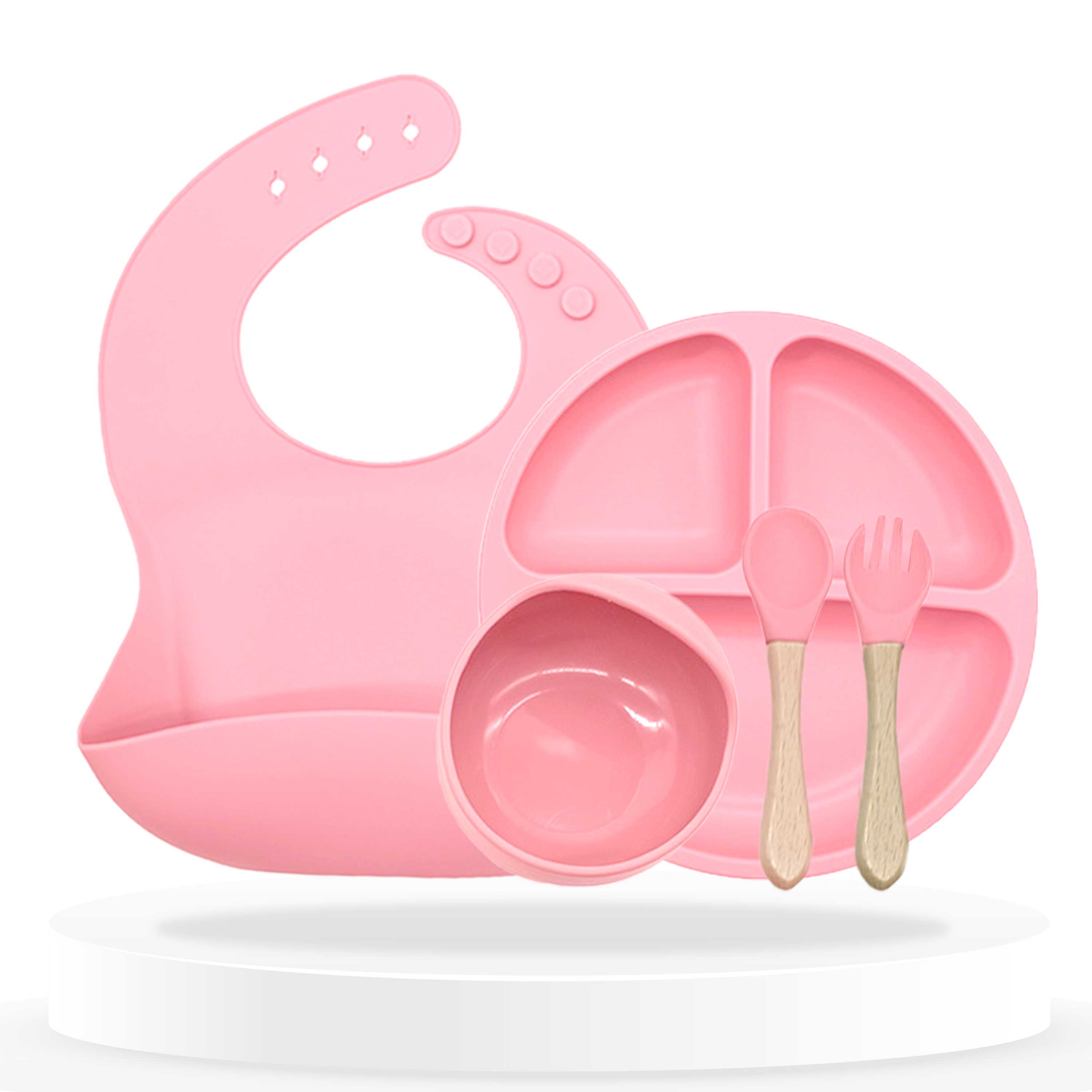 Baby Feeding Essential Baby Dinner Set Infant Training Eating Utensils (Light Pink)