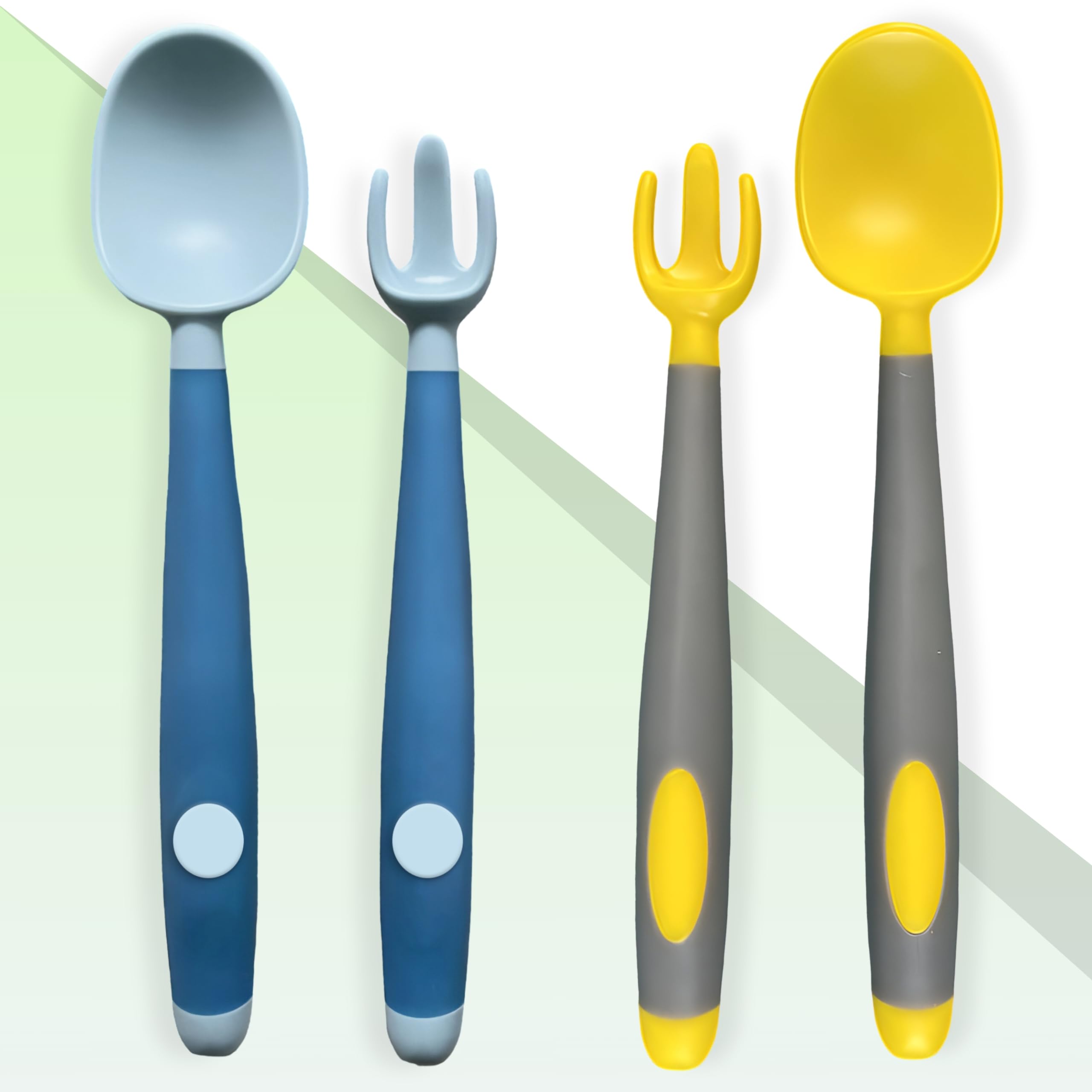 Baby Spoon and fork Set for Baby Feeding (Bendable Yellow Grey)