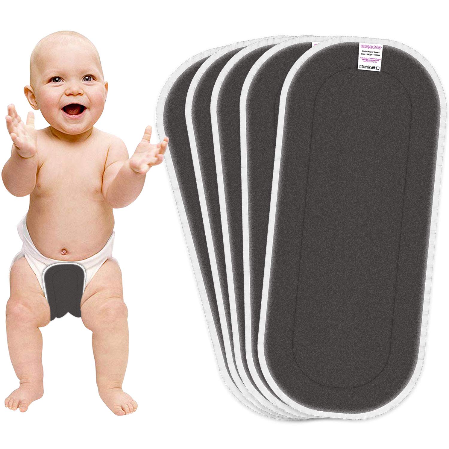 Bembika 5 Layer Bamboo Charcoal Inserts Liners Natures Cloth Diaper Liner, Wetfree Reusable Washable Cotton Diaper Nappy Inserts for Baby Cloth Diapers (Set of 5)