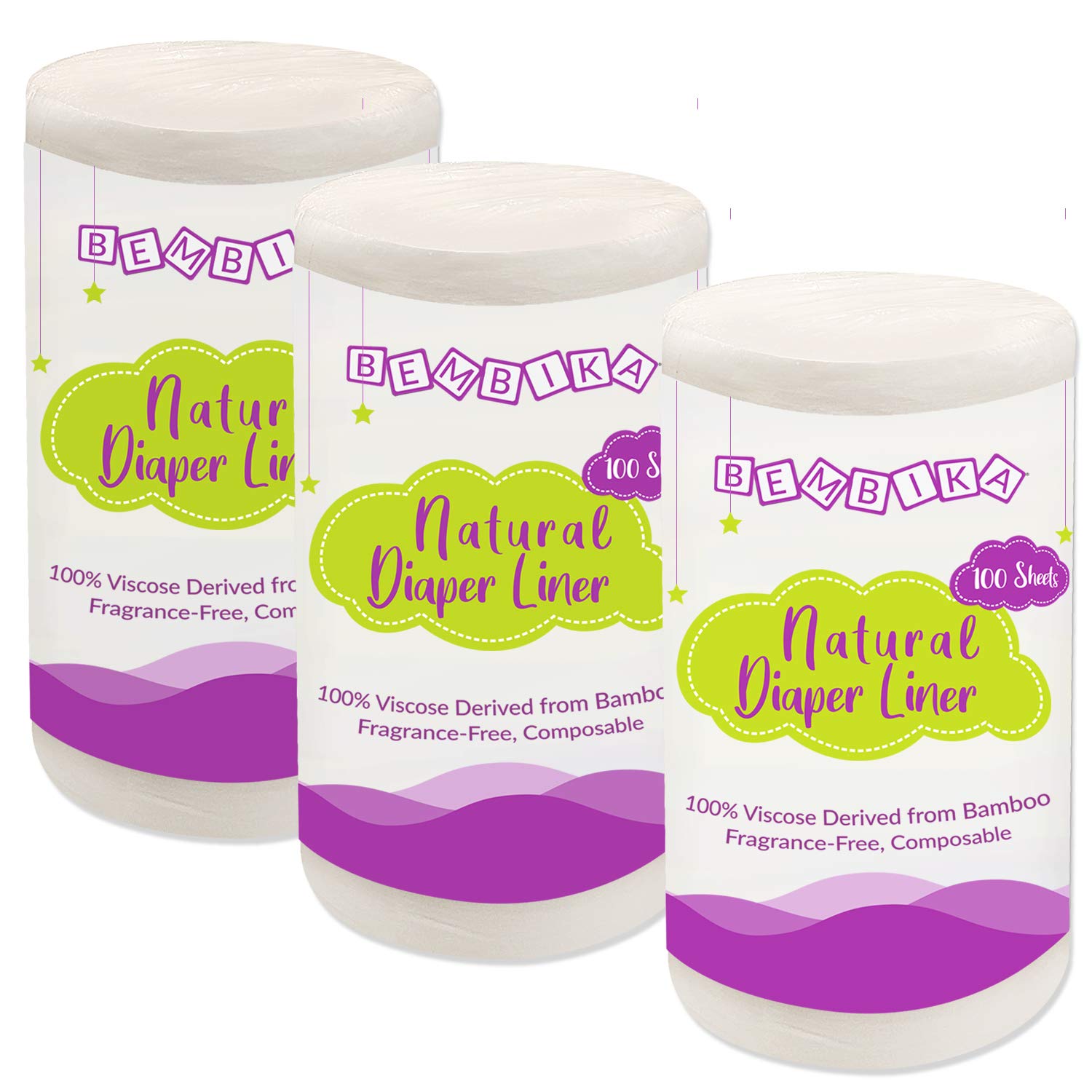 Bembika Bamboo Diaper Liners Disposable for Unisex baby, Chlorine Free, Compostable, Dye Free, Cloth Diaper Insert Liner, 300 Sheets