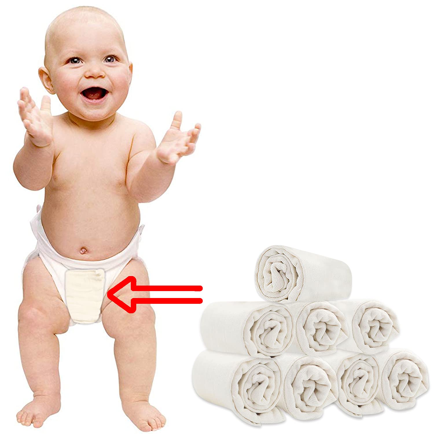 Bembika Cloth Daiper for Cotton Inserts Natures Cloth Diaper Liner,Reusable Washable Unbleached Cotton Diaper Nappy Inserts for Baby Cloth Diapers (Set of 8) (Prefold Cotton Insert- 2x4x2 Layer)