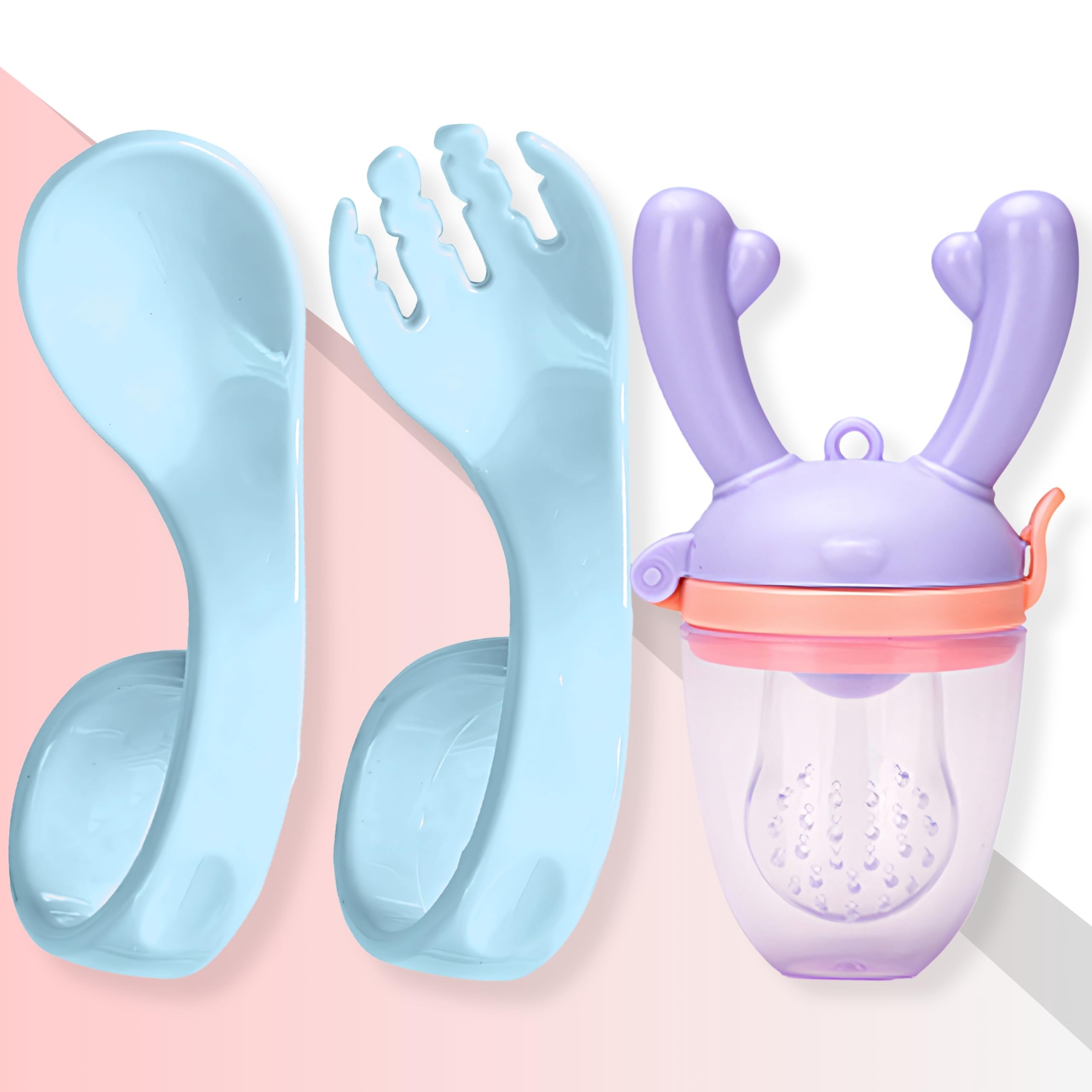 BPA Free Baby Feeding Spoon & Fruit Nibbler Set (Curved Blue)