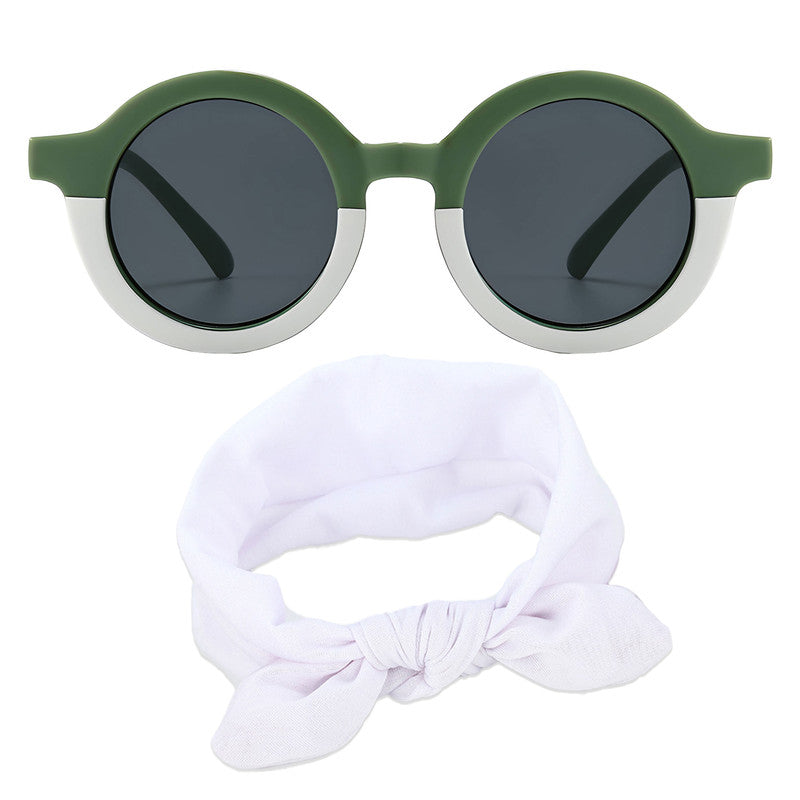 Fashionable Sunglasses and Headband for Kids & Baby Girls (Green White)