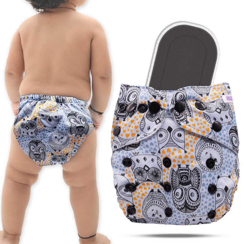 Reusable Baby Cloth Diaper with Adjustable Snap Buttons and Insert (Set of 1)