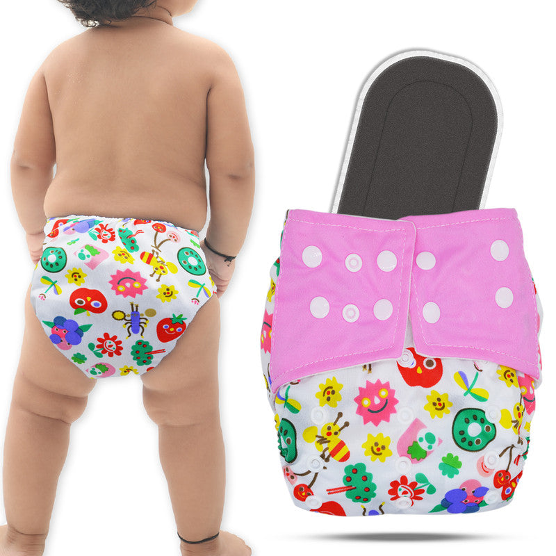 Reusable Baby Cloth Diaper with Adjustable Snap Buttons and Insert (Set of 1)