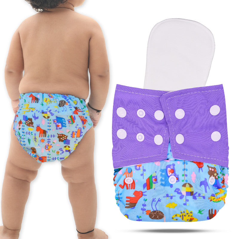 Reusable Baby Cloth Diaper with Adjustable Snap Buttons and Insert (Set of 1)