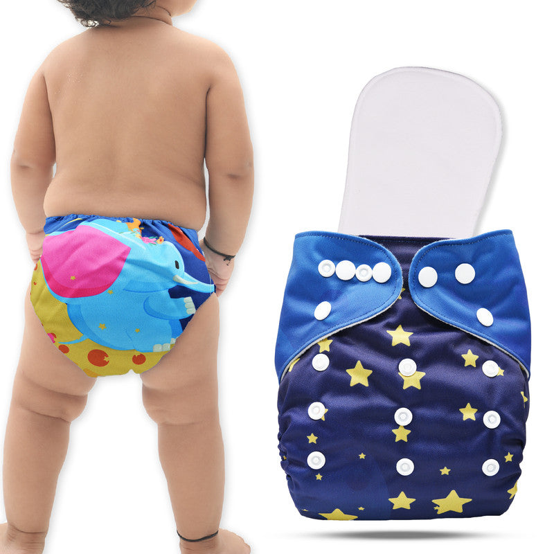 Reusable Baby Cloth Diaper with Adjustable Snap Buttons and Insert (Set of 1)