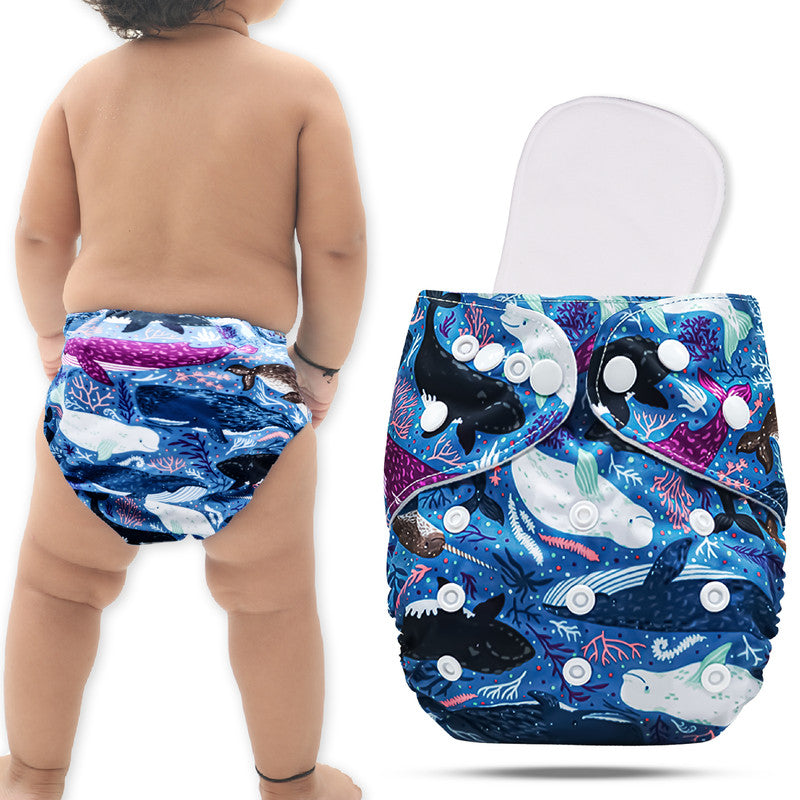 Reusable Baby Cloth Diaper with Adjustable Snap Buttons and Insert (Set of 1)