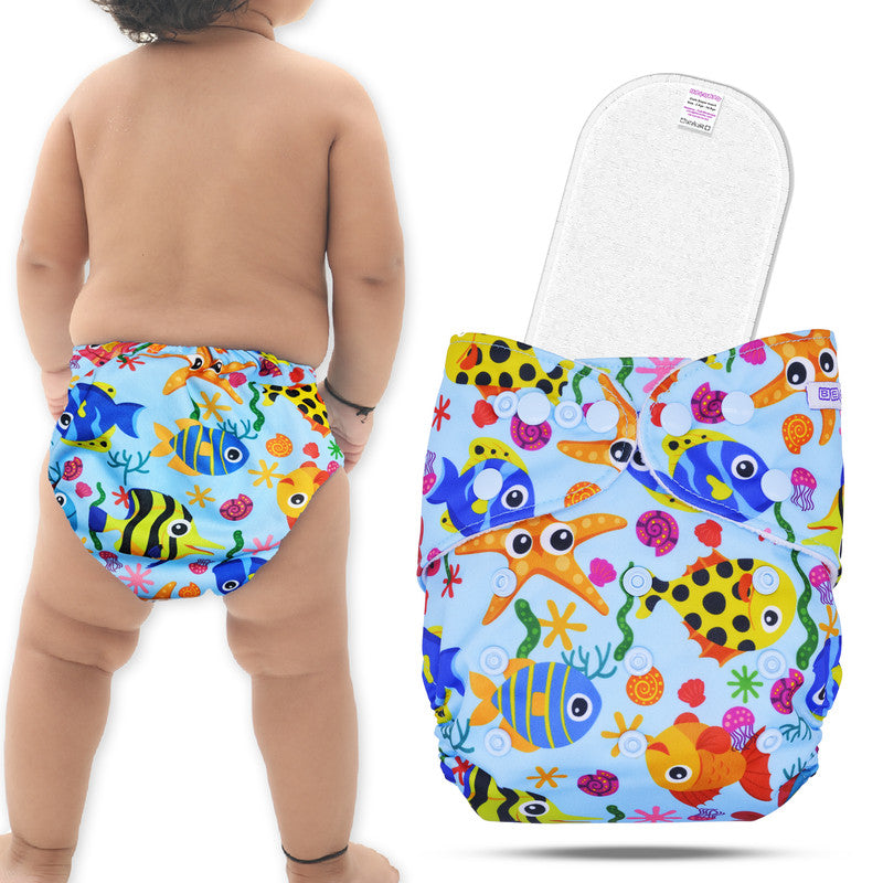 Reusable Baby Cloth Diaper with Adjustable Snap Buttons and Insert (Set of 1)