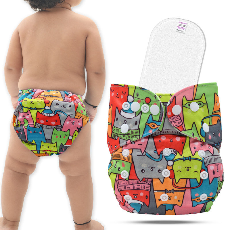 Reusable Baby Cloth Diaper with Adjustable Snap Buttons and Insert (Set of 1)