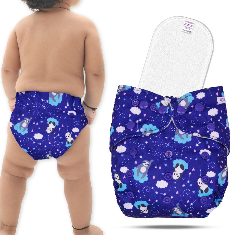 Reusable Baby Cloth Diaper with Adjustable Snap Buttons and Insert (Set of 1)