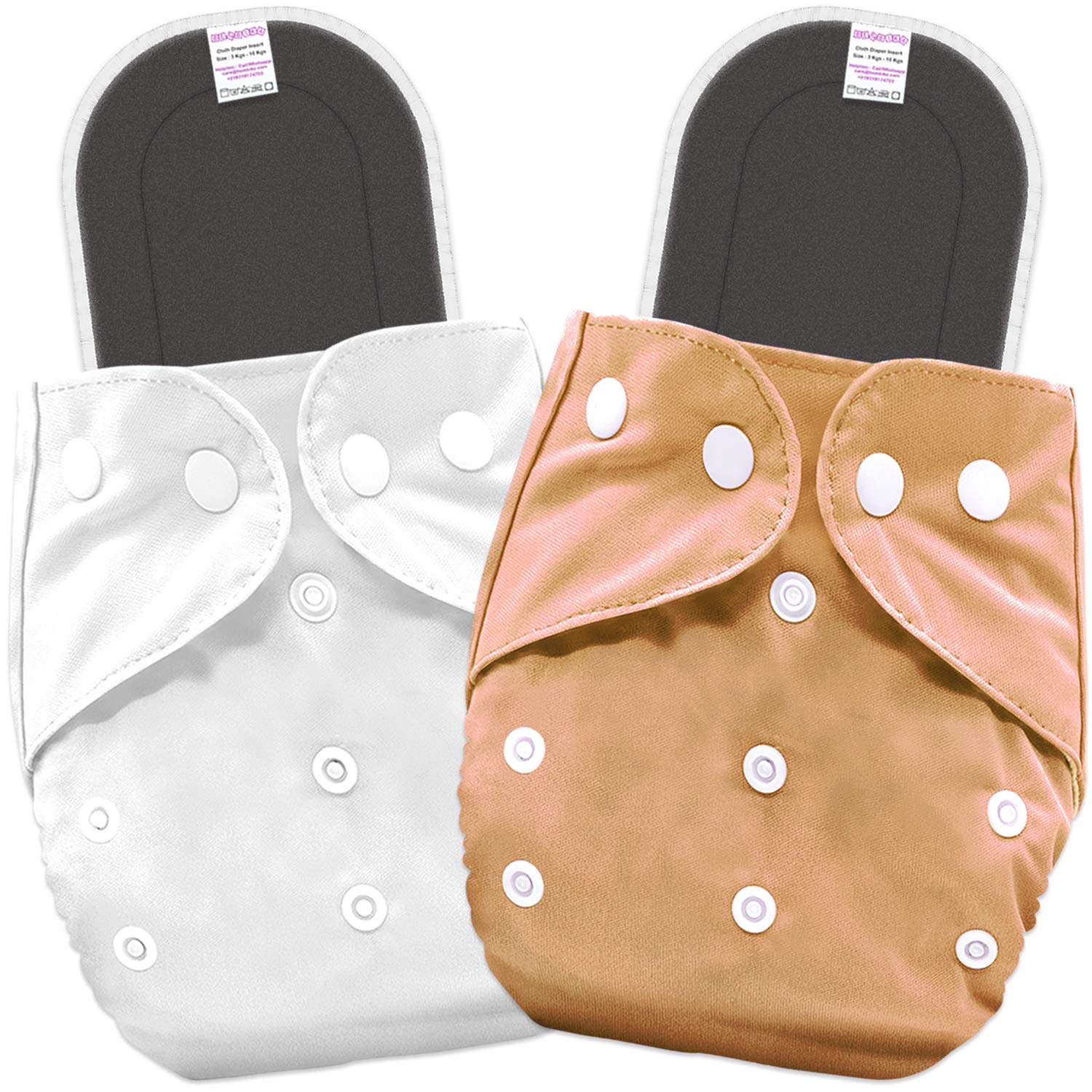 Reusable Baby Cloth Diaper with Adjustable Snap Buttons and Inserts (Set of 2)