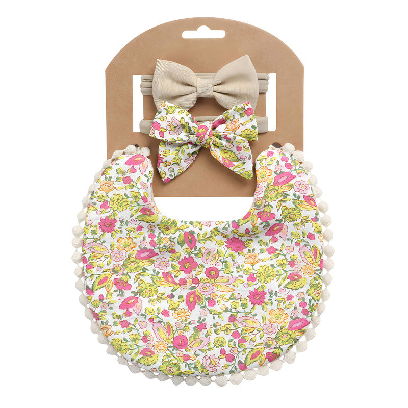 Washable and Lightweight Baby Feeding Bib and Bow (Floral Yellow)