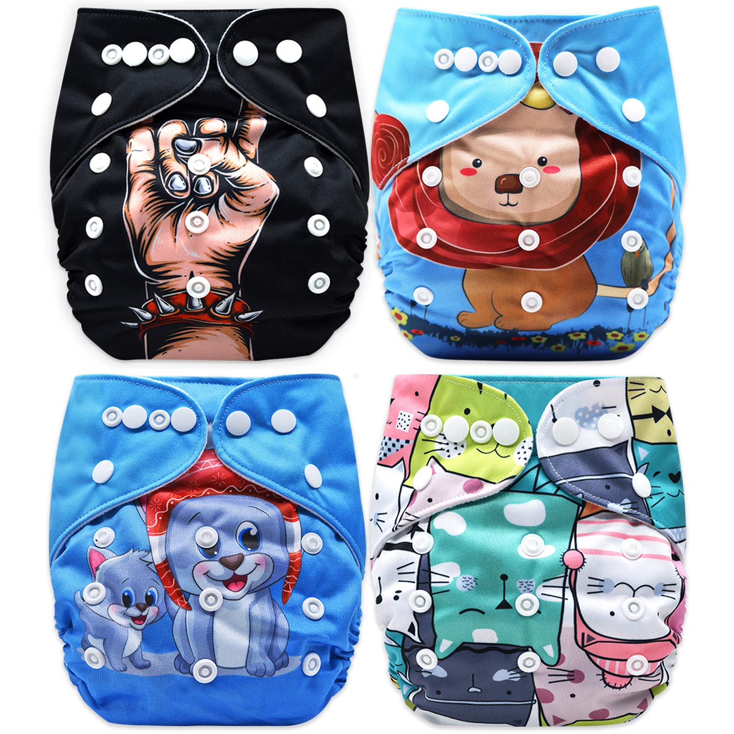 Washable & Reusable Baby Cloth Diaper With Adjustable Size Button (Set of 4)